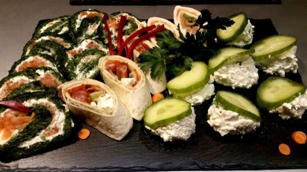 - Roladki (krem śmietankowy, szynka, ser feta, pomidorory suszone, oliwki)